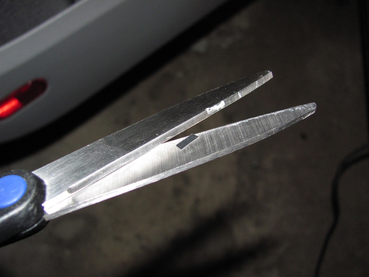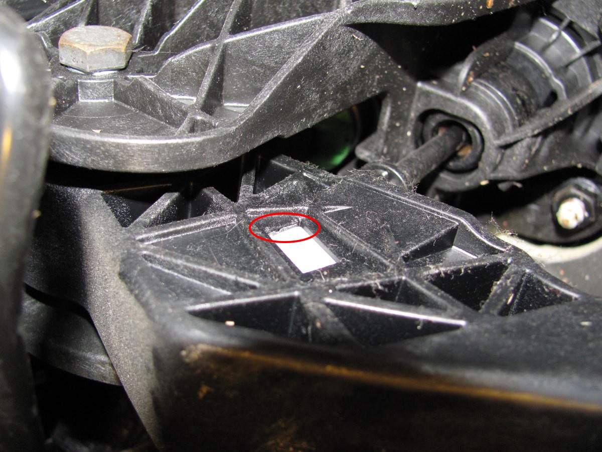 3) При помощи пинцета заталкиваем полученный кусочек в паз между защелкой и педалью. Липкой стороной он приклеится и не выпадет. Если сравнить две фотографии, то его отчетливо видно.