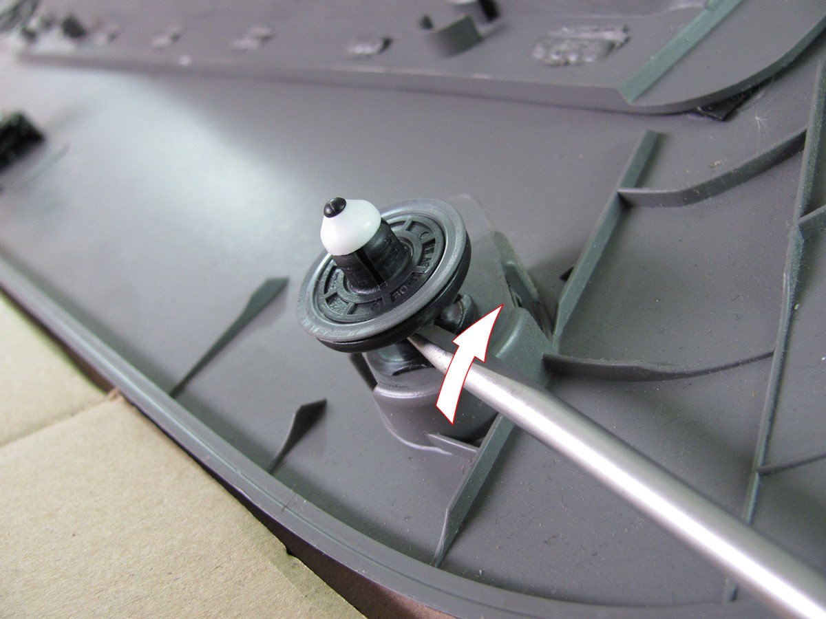 8) Одеваем обшивку с разжатыми защелками на место, вдавливаем их по периметру.