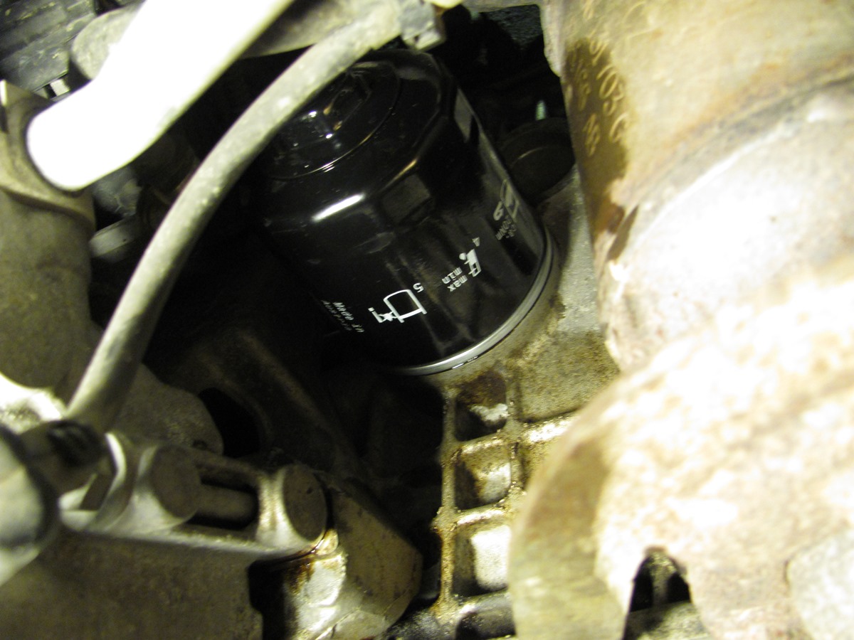 5) Открутили. Остатки масла из фильтра обязательно вытекут на руки, двигатель и пол. Тряпка не поможет