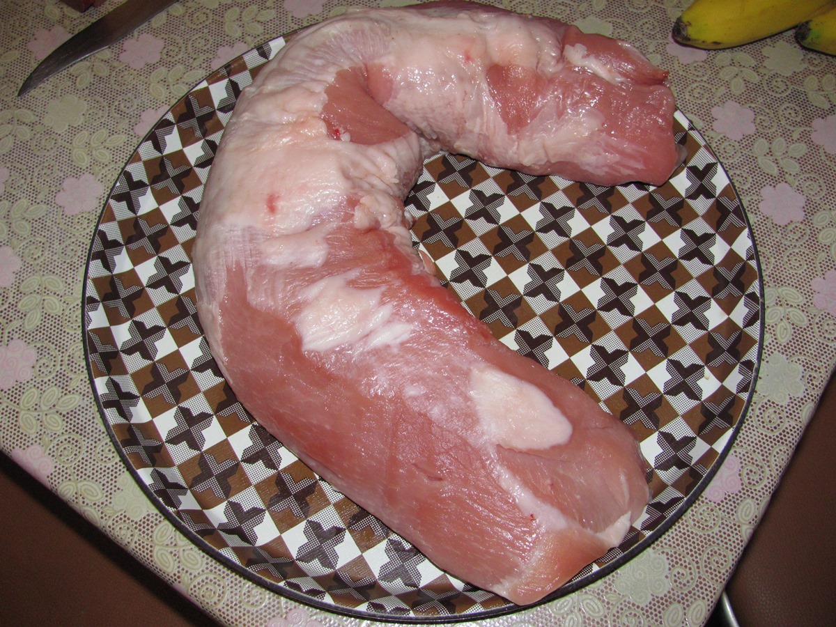 1) Покупаем вырезку (на фотографии 2,4 кг).