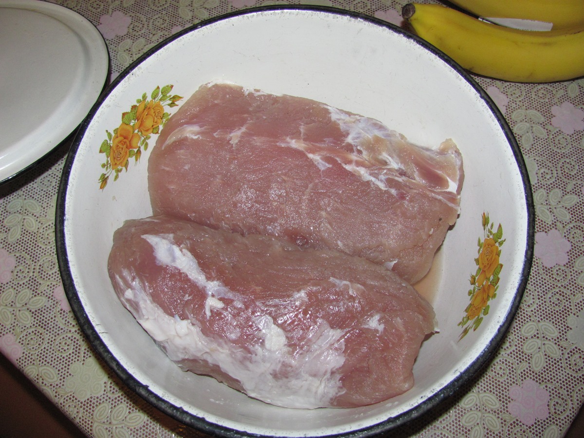 3) Кладем куски в миску, накрываем крышкой и прячем в холодное место (в холодильник или на балкон) на трое суток. Мясо пустит сок – так и должно быть, переворачиваем каждые 12 часов.