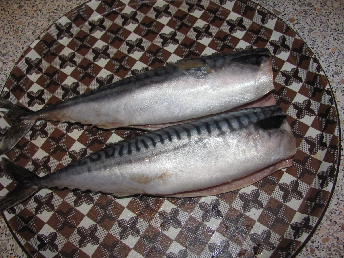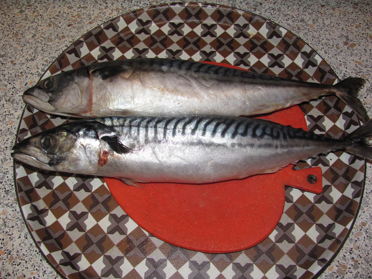 Размораживаем скумбрию. Масса двух рыбок вышла ровно один килограмм.