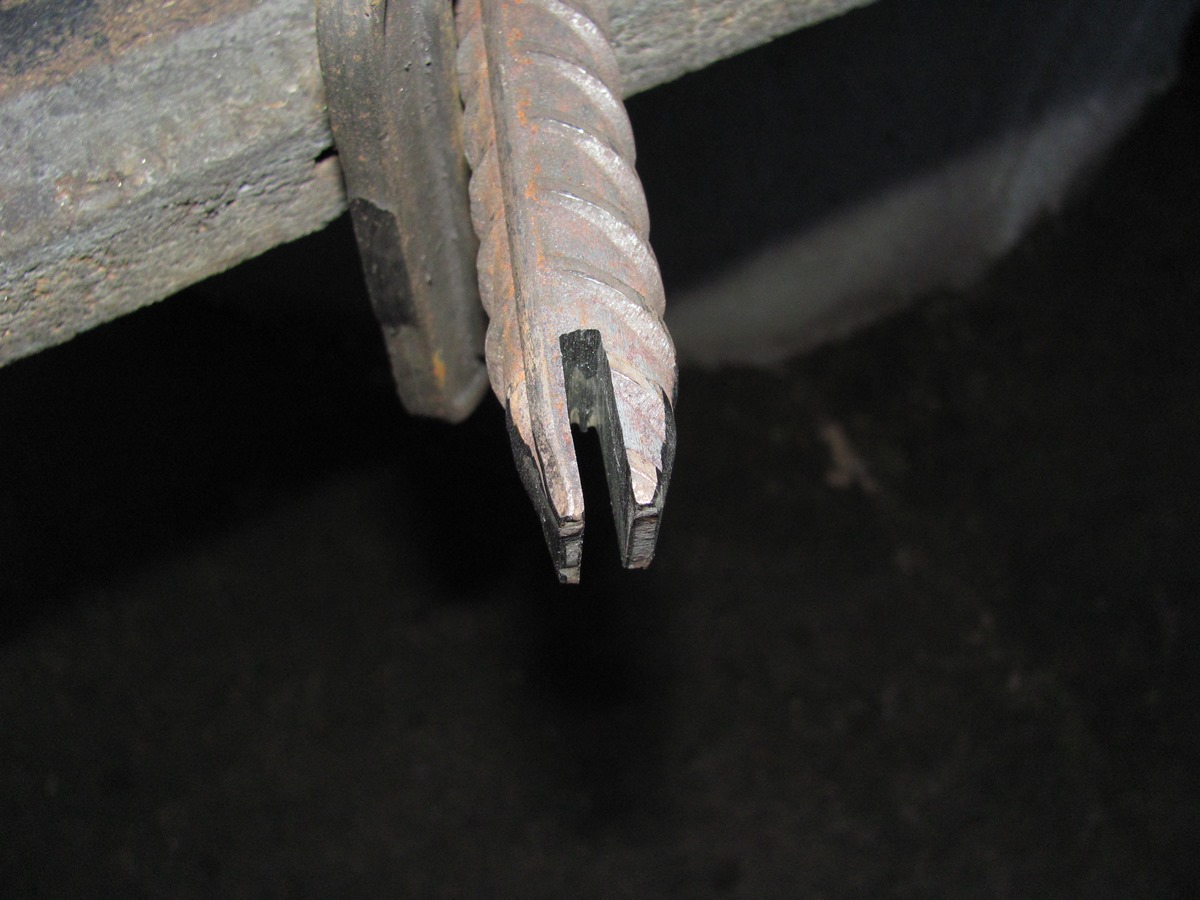 В арматуре диаметром 20 мм сделаем пропил на толщину острия.