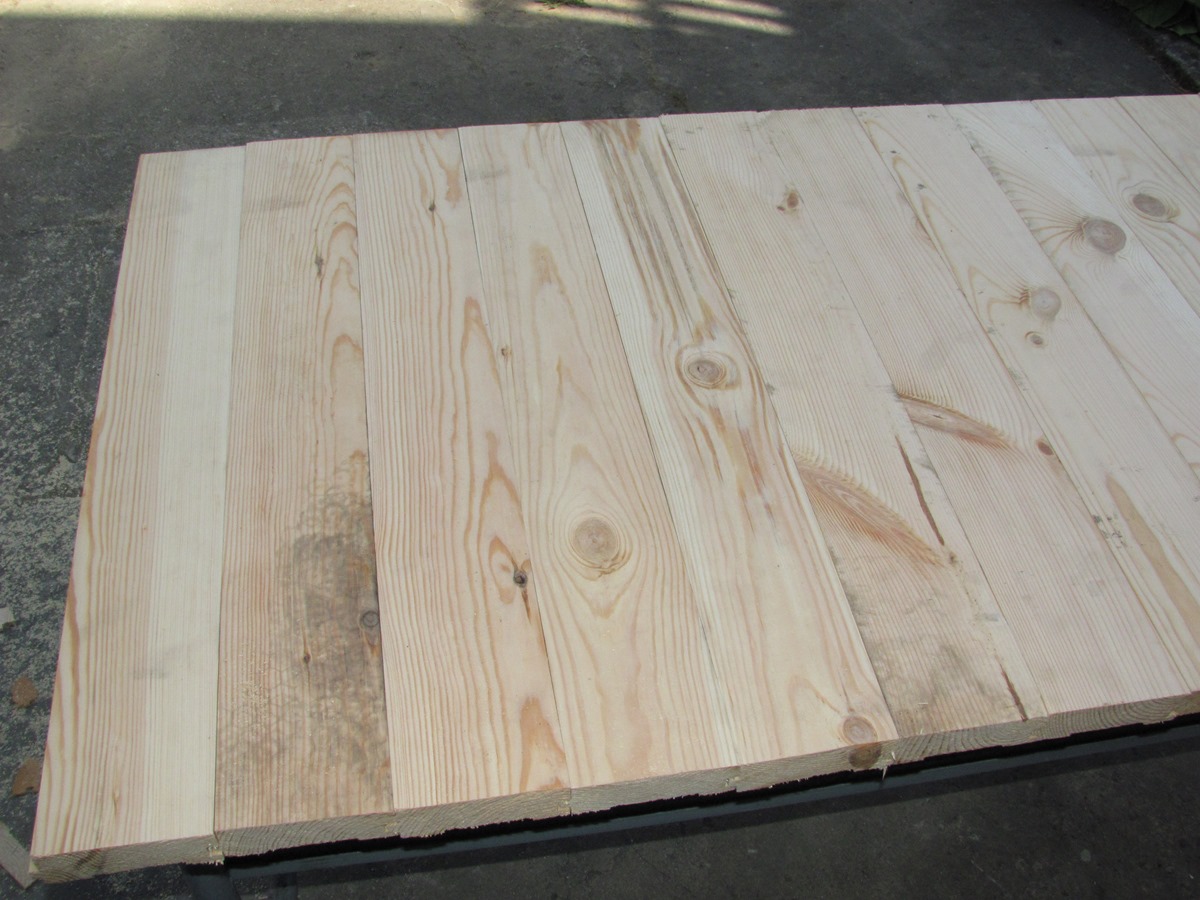 Доски подготовлены для укладки поперек стола. Из-за запаса по общей длине доски ширина столешницы оказалась равной 78 см.
